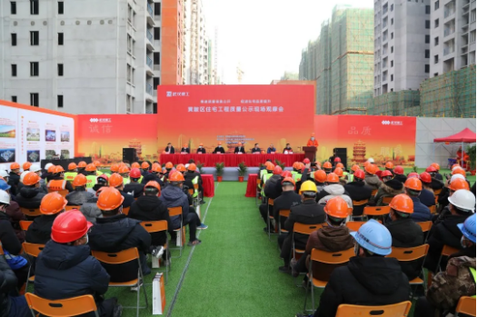 12月22日,黃陂區(qū)住宅工程質(zhì)量公示現(xiàn)場觀摩會在武漢建工承建的交投·合盛嘉園項目現(xiàn)場成功舉辦。黃陂區(qū)人民政府副區(qū)長葉建剛、武漢市住房和城鄉(xiāng)建設局副局長周才志、武漢建工集團副總經(jīng)理余峰出席活動。