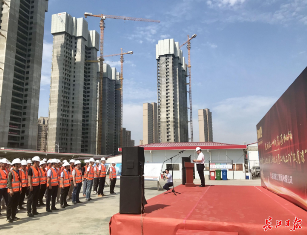 6月8日上午,位于經(jīng)開大道旁的車都?春臺里項目工地80余名一線建設(shè)者在辦公區(qū)上了一堂“微黨課”。即日起,黨史教育巡回展將在武漢建工集團市內(nèi)12個重點工地巡回展出,持續(xù)至10月。