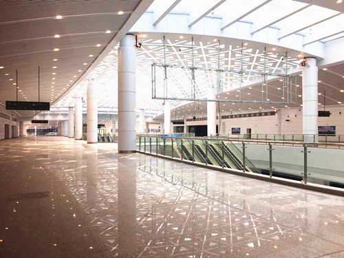 機(jī)場(chǎng)交通中心一層為長(zhǎng)途客運(yùn)、出租車候車區(qū)和社會(huì)停車場(chǎng)以及相應(yīng)的管理及服務(wù)配套設(shè)施,擁有停車位872個(gè);二層為旅客集散大廳、社會(huì)停車場(chǎng)及配套商業(yè)設(shè)施、會(huì)議區(qū)、酒店區(qū)等(該層與T3航站樓到達(dá)廳同層,通過(guò)廊道連接),擁有停車位1116個(gè);地下一層中部為城鐵、地鐵站廳,兩側(cè)為交通中心地下停車庫(kù)及設(shè)備用房、地下人防,擁有停車位1238個(gè)。天河機(jī)場(chǎng)交通中心投入使用后,將滿足天河機(jī)場(chǎng)近期2020年日高峰客流高達(dá)35萬(wàn)人的旅客集散需求。