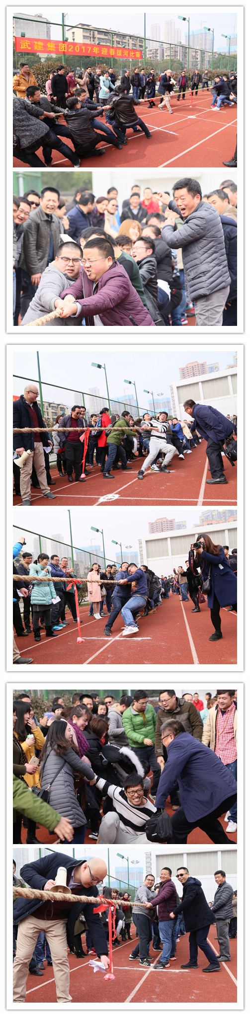 經(jīng)過三輪激烈刺激的比賽,最終由工程項(xiàng)目一隊(duì)、富強(qiáng)公司隊(duì)和首次單獨(dú)組隊(duì)的機(jī)電安裝公司隊(duì)分別獲得比賽的第一、二、三名。迎春拔河比賽已成為武建集團(tuán)迎新傳統(tǒng)活動(dòng),大家擰成一股繩,勁往一處使,擼起袖子齊上陣,2017,我們一齊努力干!